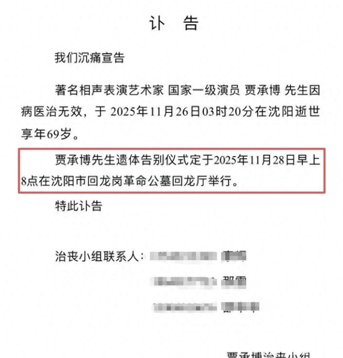 3 2025年11月26日凌晨,69岁的相声表演大师贾承博在沈阳因病辞世,消息如寒流般席卷全国,令无数观众心痛不已。