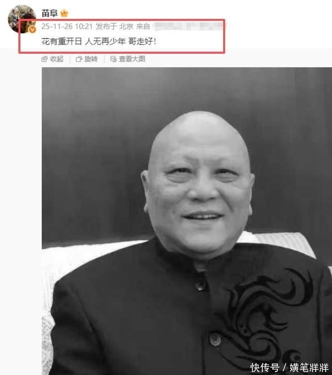 22 曲艺名家苗阜也在社交媒体发布悼文:“花有重开日,人无再少年,哥走好”,寥寥数字,承载万千思绪,道尽不舍与悲恸。