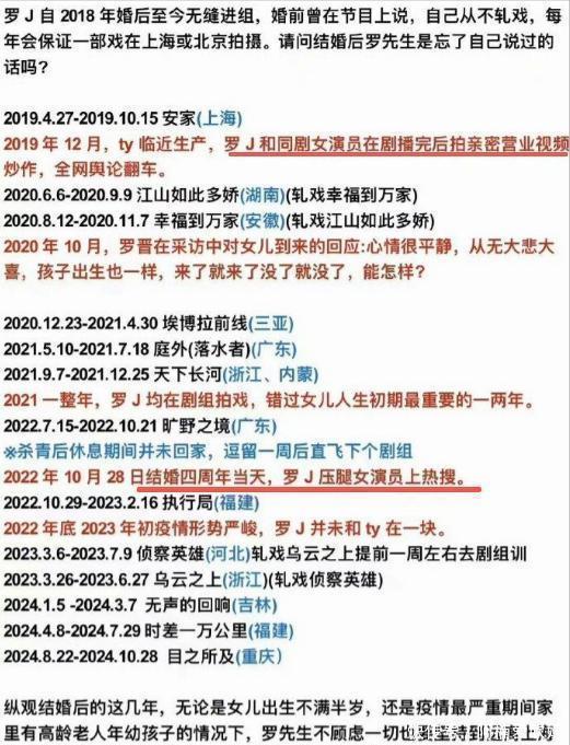 最绝的是这个——有课代表做了罗晋行程表,好家伙,这几年简直就是个工作狂魔!说好的一年一部戏陪家人呢?除了拍戏就是拍戏,家都快成酒店了!