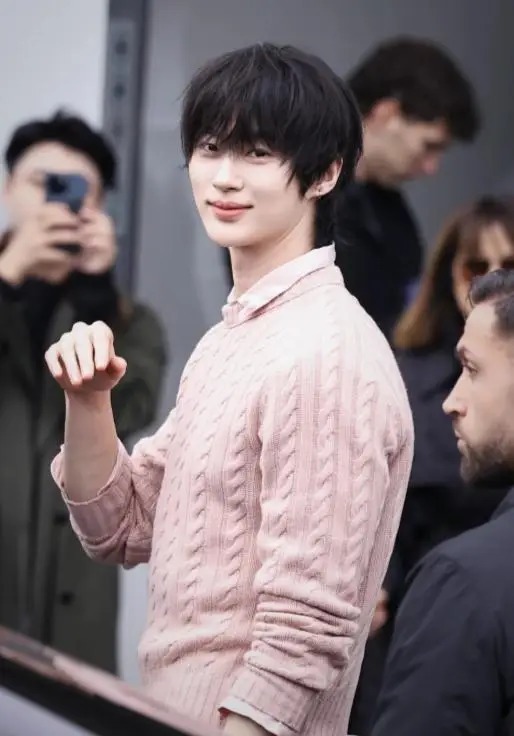 边佑锡穿了一身粉色的毛衣,很少有男人能把粉色穿得出来感觉的。