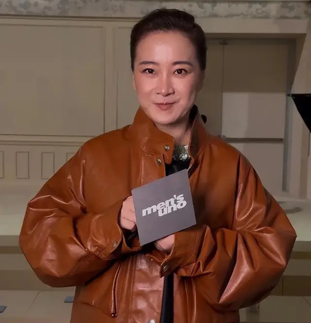 皮衣的挺括质感衬得她身姿挺拔,盘发露出完整脖颈线条,一改往日柔和的风格,头包脸的样子气场直接拉满。