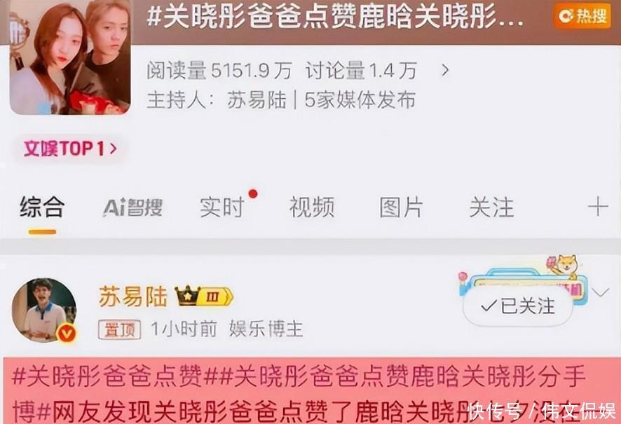 有些细心的网友发现,关晓彤的爸爸关少曾赞了一条关于“鹿晗关晓彤疑似分手”的消息。当有人再次查看的时候,这个点赞已经取消了,不清楚是他有意的还是一时手滑。关晓彤爸爸这一行为,引起了网友们各种猜测,难不成他们真的分手了吗?