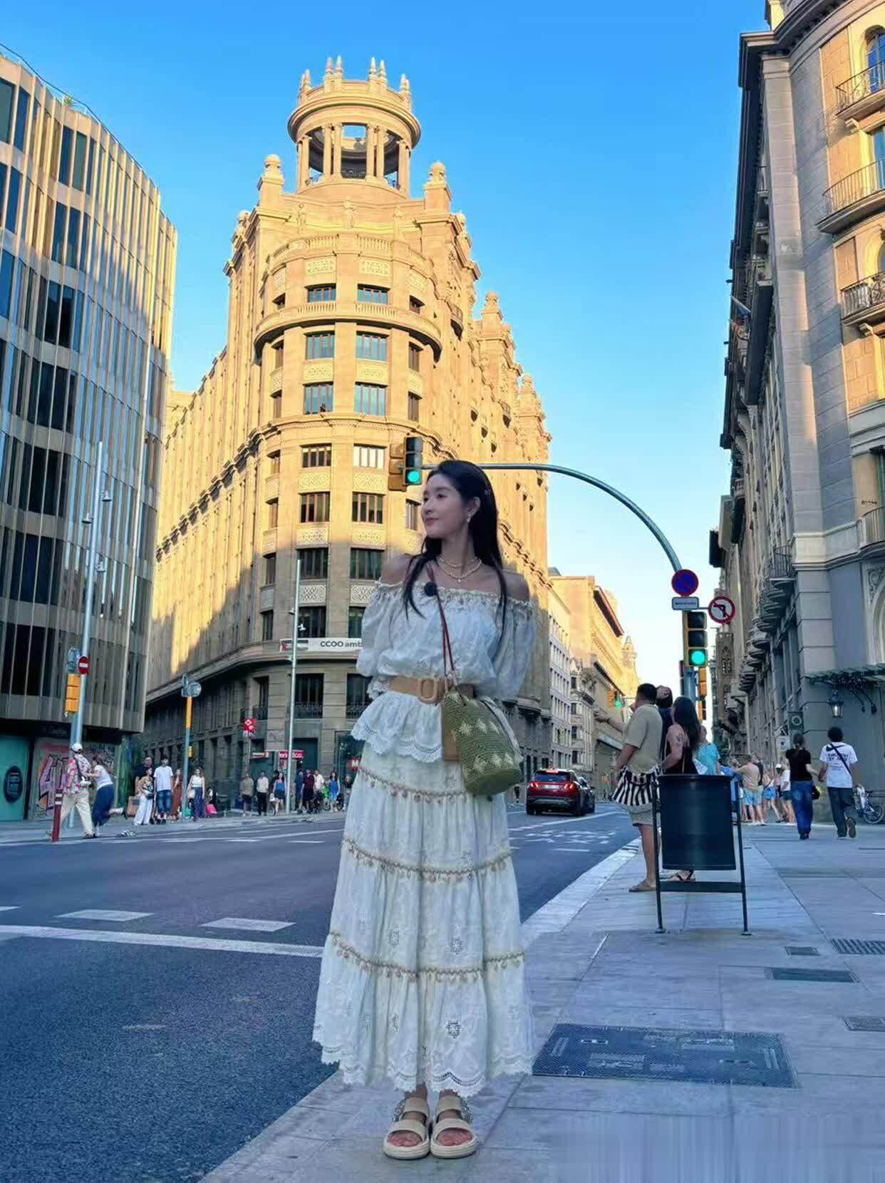 白色波西米亚风那套更是惊艳,一字肩上衣露出精致的锁骨,休闲长裙随风飘着,度假感直接拉满。她没选夸张的配饰,就系了条自然色腰带,轻轻一收就把腰线勒出来了,小细腰若隐若现,一点不刻意。以前总觉得波西米亚风太挑人,容易穿成“窗帘布”,现在才发现,选对版型和配饰很重要——上衣别太宽松,裙子长度到脚踝,再用腰带强调比例,普通人也能穿出轻盈感。