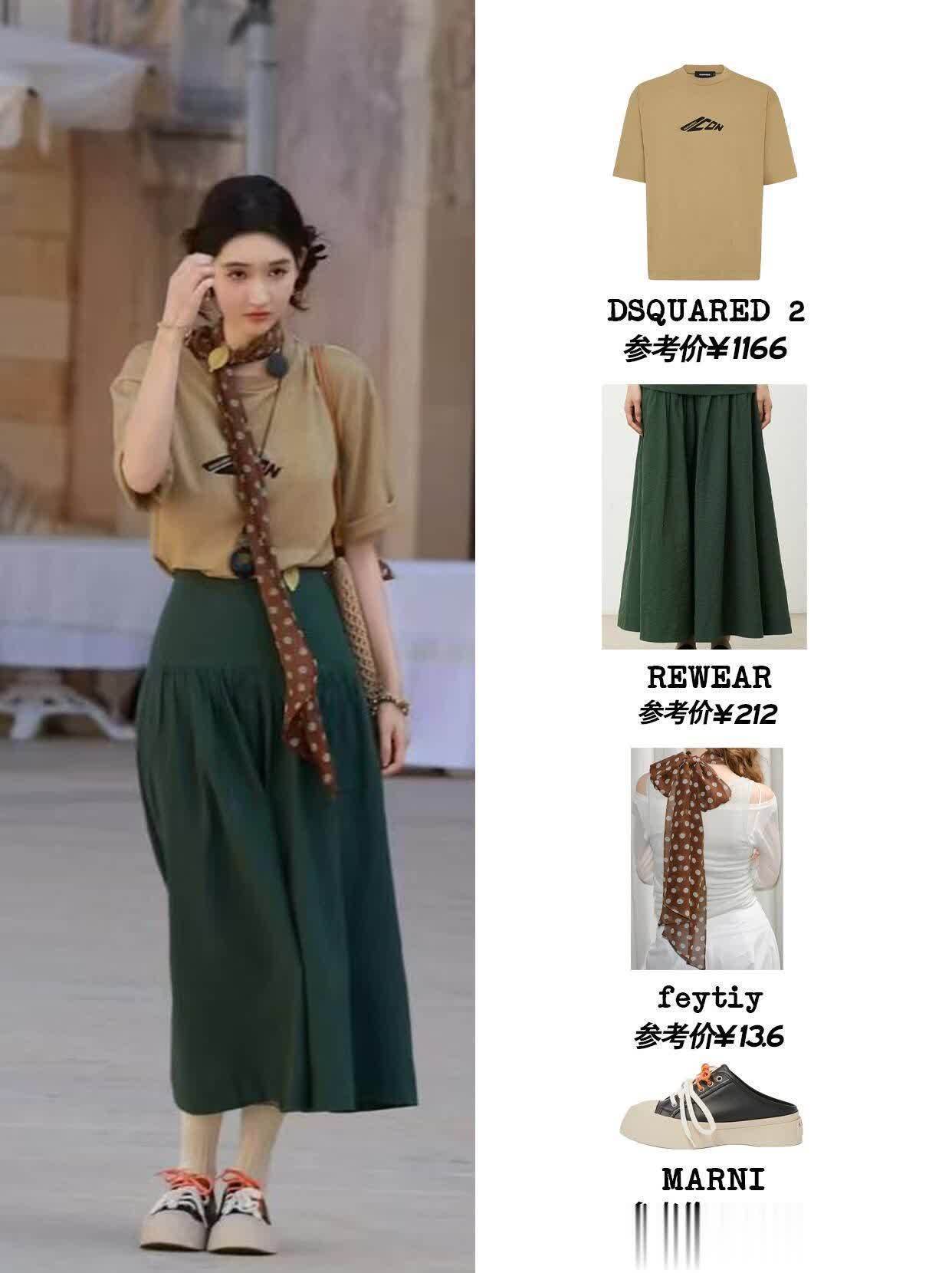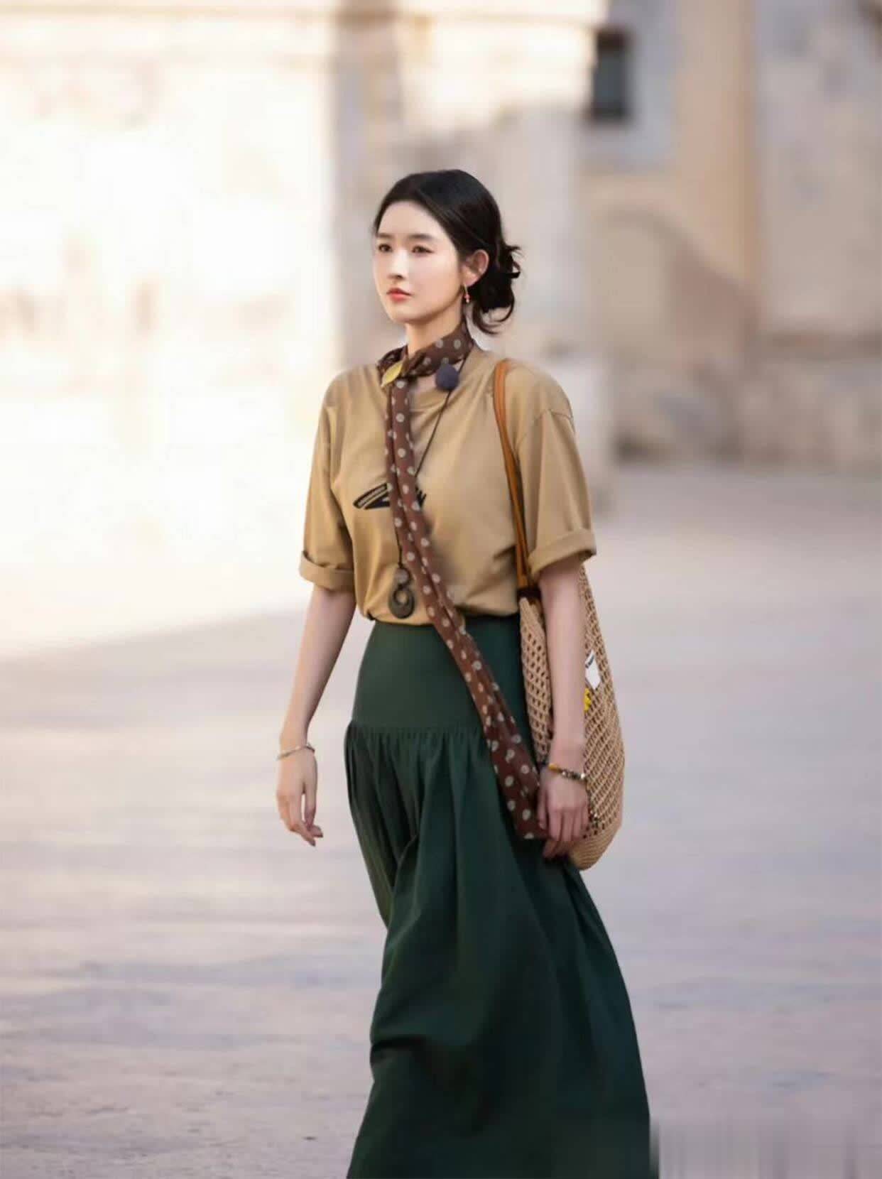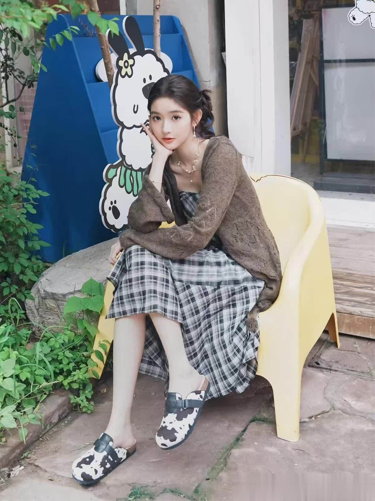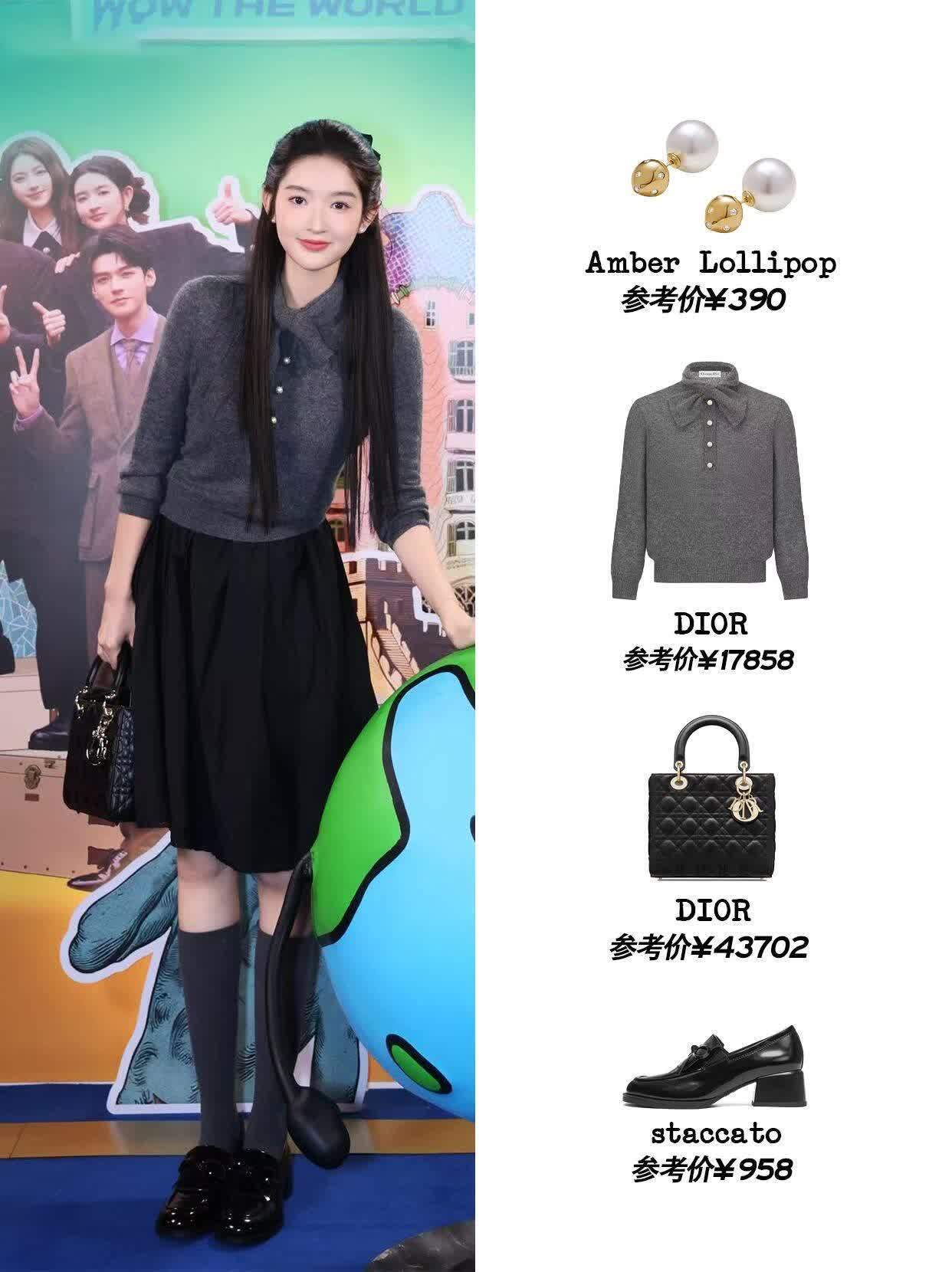 她的穿搭从来不靠堆logo,全凭细节打动人。比如针织衫上的蝴蝶结,不大不小刚好点缀;腰带颜色和裙子接近,不抢镜却能悄悄优化比例;就连鞋子都选得恰到好处,乐福鞋配伞裙显乖巧,平底凉鞋配长裙显随性,每种风格都踩得很准。